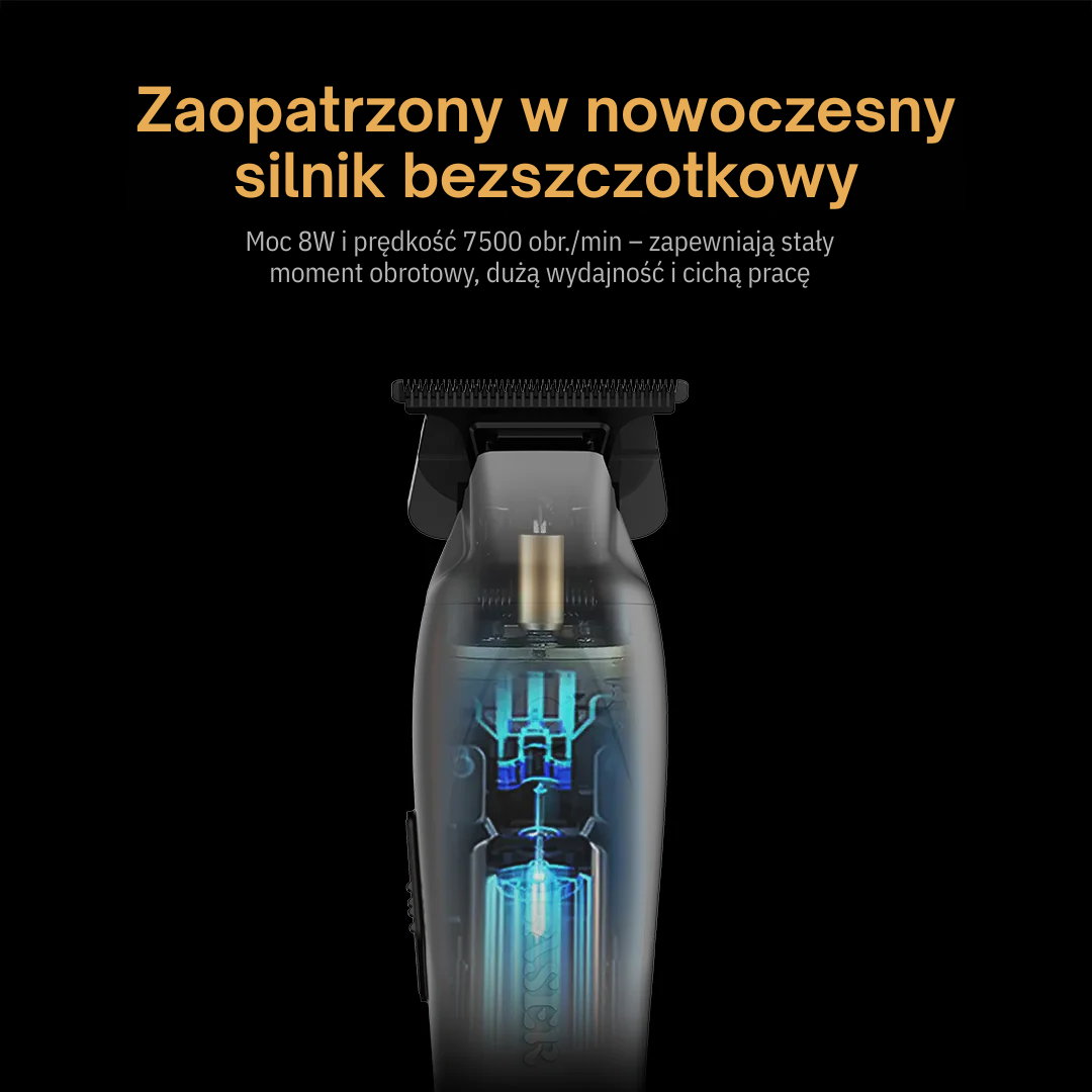 To narzędzie o wysokiej wydajności, kompaktowym designie i inteligentnych funkcjach, które spełni oczekiwania najbardziej wymagających barberów – od detali po pełną kontrolę stylizacji.